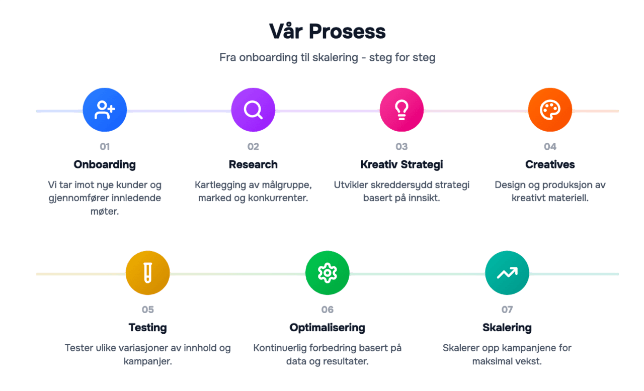 Vekst skapes ikke av enkeltannonser, men av systematisk testing, ukentlig iterasjon og skalering av annonsene som faktisk fungerer.